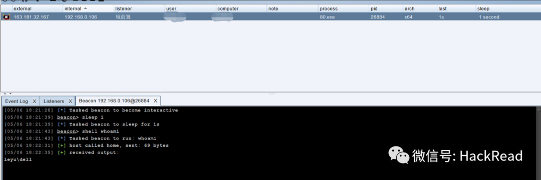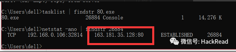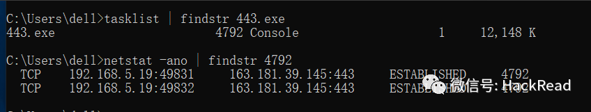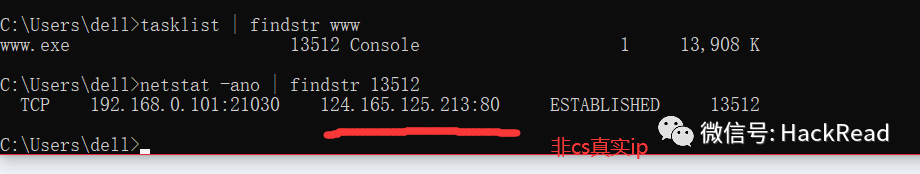 但是虽然说netstat -ano查不到cs真实ip,但是这种方式流量设备能够查到cs真实ip