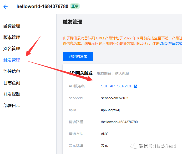 云函数的触发器设置为API模式(访问一个API才交给云函数处理)
