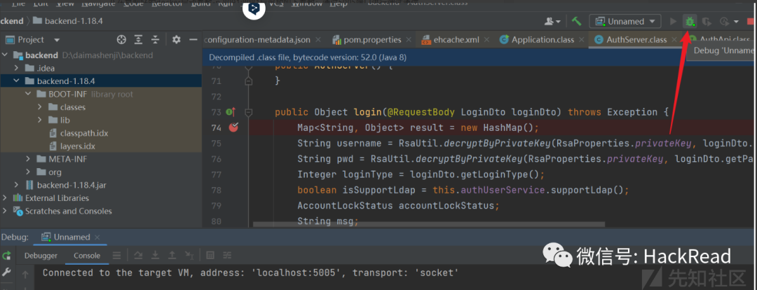 12.如果有源码,也可以像第三步中一样,直接在idea设置debug后,也可以正常debug