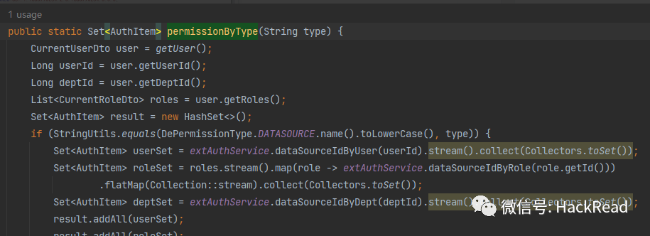 15、然后调用AuthUtils.permissionByType(type),这个方法中,返回了当前用户可以操作的type对应的数据