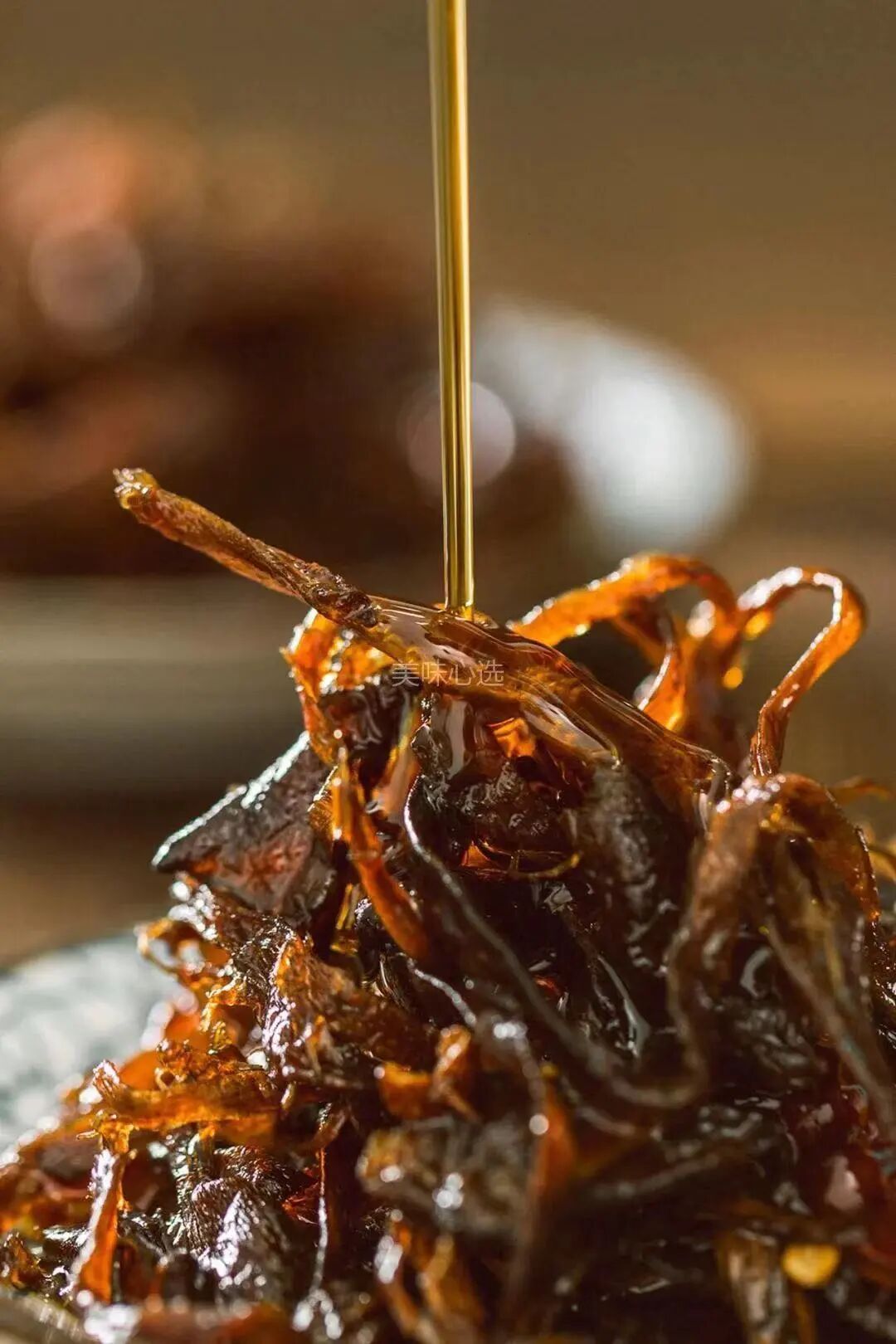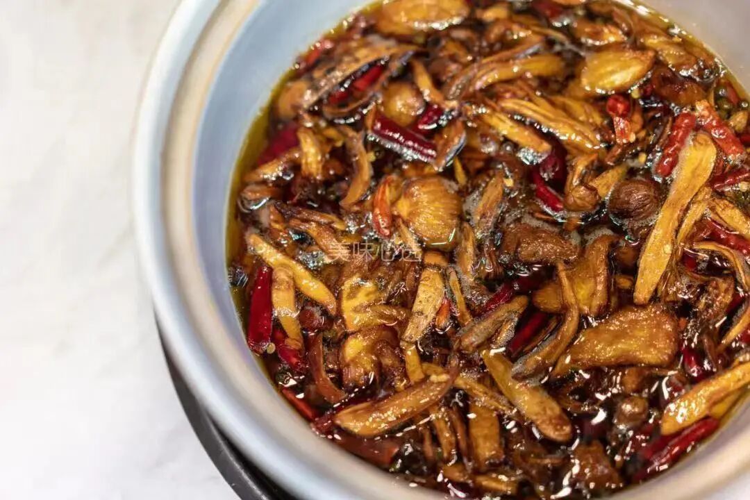 🫕文火慢炸中,鸡枞的鲜香迁移到热油中,