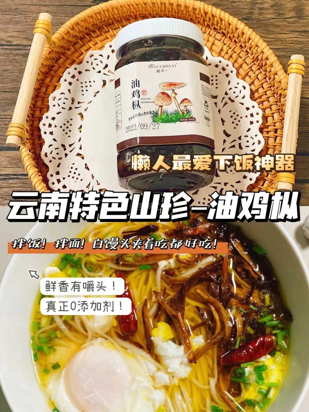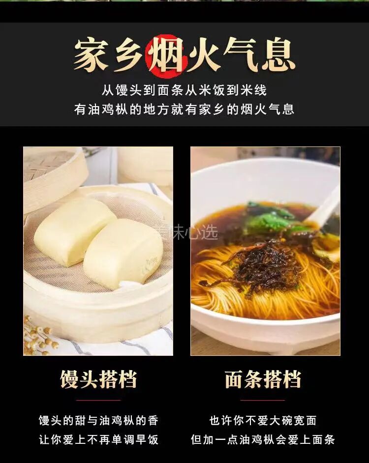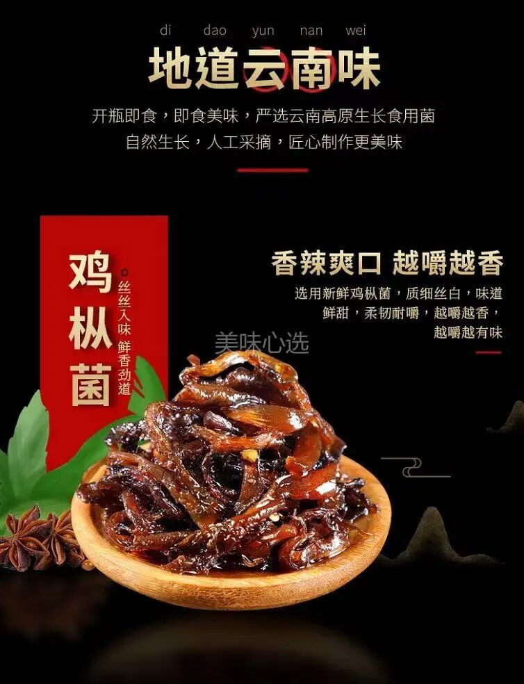 2瓶49.9r!登榜《舌尖2》的云南特色!比肉还香巨下饭!【杨芊一油浸鸡枞菌🍄】真正的山珍!鲜到空口炫的拌饭酱❗配料表帮你们看了:完全没有任何添加剂、防腐剂,老人小孩都放心吃!配料超干净,大块菌菇,一口下去,腴鲜十足,筋道又易嚼。没有任何的🈲️添加剂、防腐剂,孕妇小孩老人都可以放心地吃🏻最近天越来越热了️ 人恹恹的不说,食欲也提不起来 用一些清淡的降火 但是清淡的吃多了,也会厌它不仅是做饭小白的福音 ,更是懒癌&纠结症的终极者,百搭神器,分分钟召回你流离在外的胃~️先用辣椒,加植物油,加上我们的食用盐,加上芝麻,加上香辛料最后在放入我们原生态的油鸡枞,几分钟过香喷喷的油鸡枞就出来了油炸过的鸡枞🍄鲜香味美!柔韧有嚼劲 👅每一口都是满足!香香辣辣~ 每一勺都是满满的料!用来拌饭拌面蘸饺子or拌凉菜 都🉑️ 怎么吃都很过瘾‼️真的太爱了 放心囤‼![]()
