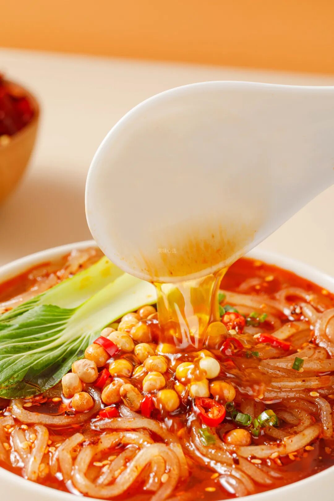 有些酸辣粉打着辣的噱头,用一些只辣不香的劣质辣油,吃起来舌头立马抗议,不用冰水都吃不下去,那可不是酸辣粉该有的味道啊!