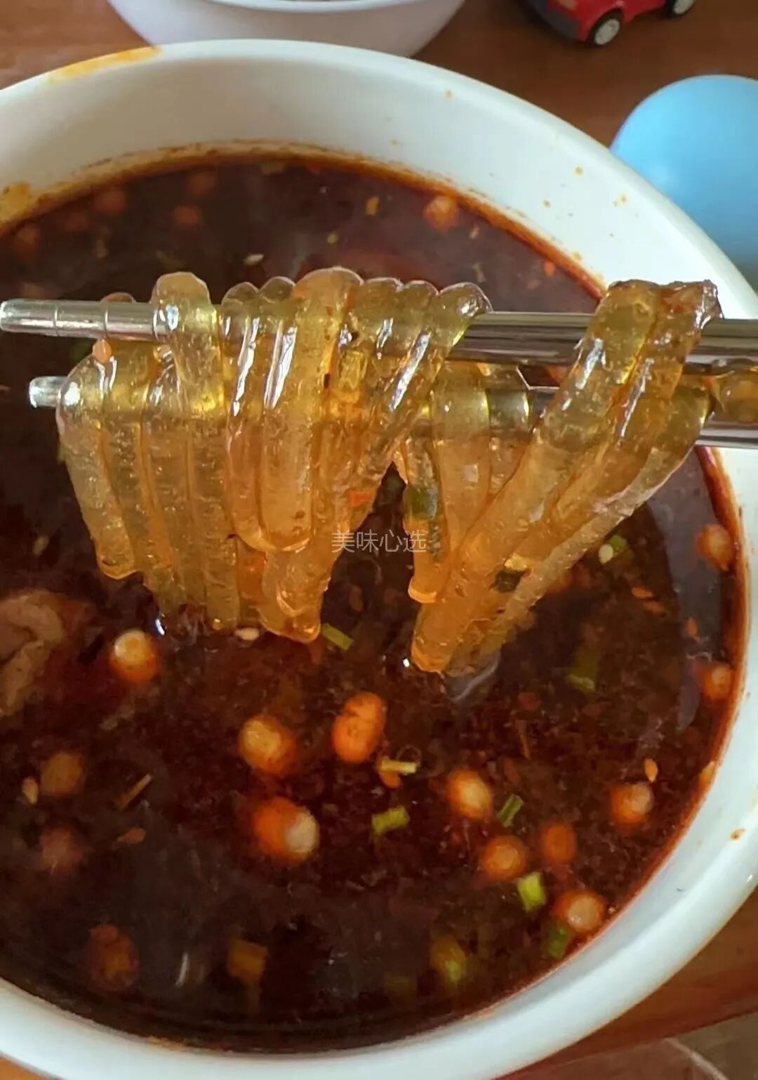 一碗酸辣粉之所以出彩,无外乎汤头和必须是晶莹剔透的红薯粉!