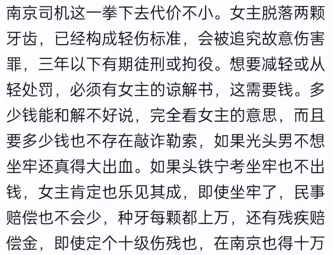 对此,有网友表示光头男的这几拳代价可不小,先不说金钱的赔偿,现在种牙本身就很贵,还有各种赔偿金等等。严重点是要坐牢的,如果不想做,那就只有获得女子的谅解,不过估计有点难。![]()