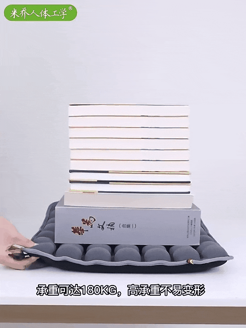 我们平时坐在普通办公椅、板凳上,绝大多数的重力都是施加在尾椎骨、屁股墩儿上;而这张减压坐垫,通过弹力气囊的挤压、分散,大腿也可以很好地帮屁股分担压力,屁屁大呼好爽!!
