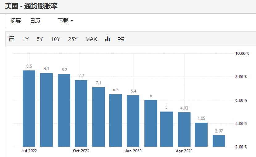 随着一次一次的加息,你们看到了!美国的通胀开始漫漫降低。最新公布的6月份的通胀更是降低到了2.97%的水平,已经无限接近美国往年平均的2%通胀数字。