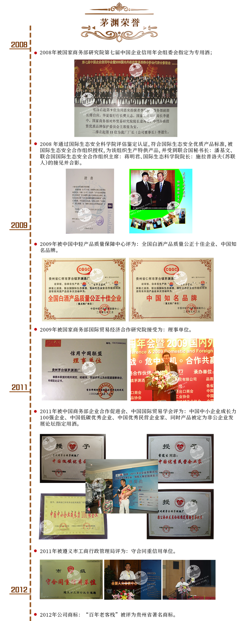 酒厂创始于1985年,1996年变更为“茅台特制酒厂”,2000年更改为“茅渊酒厂”。