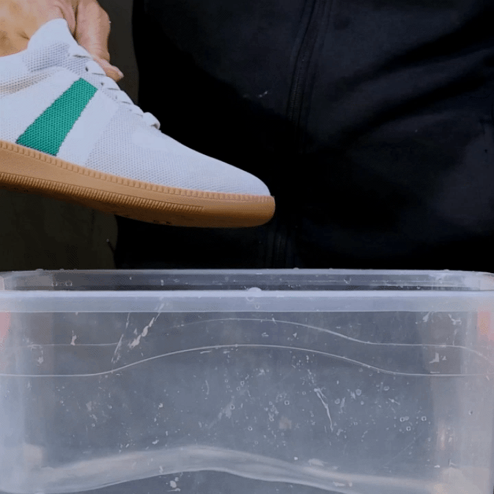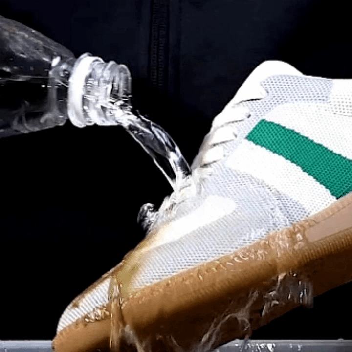 就算是放在直流的水下,水也能够在鞋面上瞬间弹开。