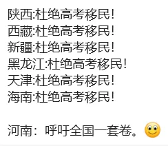 事件起因为最近不断发酵的网传西安“4万河南回流生”,挤占西安考生中高考教育资源,从而衍生出“资格造假”、“中介违规操作”等诸多问题,引发大量西安家长质疑“教育公平”。7月14号是西安市普通高中录取最低分数线公布的日期,但分数让大家大吃一惊,2023年分数比去年陡然拔高了16分。有传言说,11万西安考生里,有4万是河南的“中考移民”,这种抢占名额的情况,将导致一部分西安中考生无缘普高。于是家长们纷纷去市政府门口请愿,西安的朋友发来现场的视频,家长们聚在一起高喊口号,控诉河南籍“中考移民”考生,言辞激烈,情绪激动,要求政府给出措施,立即制止。随着舆情发酵,新华社、央视新闻、人民网等主流媒体跟踪报道此事件,压力给到西安教育局。7月18日,西安教育局紧急发文:网传“回流生4万人”,信息不实,仅有3608人。即便是3608人,终究也是西安中考生的教育资源被切去了一块蛋糕。其实,河南孩子“中考移民”,早就已经成了公开的秘密。目前可以参加西安市中考的政策是,有户籍即可,不要求必须有学籍,这本来是为带着娃在外务工的西安人服务的,他们的孩子不管去哪上学,只要户籍留在西安,都可以回来中考,叫做“回流生”。也就是说,只要有能力买一套房落户,就可以在西安参加中考了。西安房价跟郑州差不多,甚至很多地方比郑州还低,落户不难。即使不想买房,也有大把中介机构,可以找途径办理集体户口,孩子在河南读书,去西安考试。中考移民的目的不是中考,而是3年后的高考。因为一般高考都要求参加当地的中考才能获得高中学籍,所以中考前就成了“移民”的最好的时机。为啥要做高考移民?用西安一个回流生咨询机构的宣传语来说:换个赛道,给孩子一个弯道超车的机会。这是个公说公有理,婆说婆有理的问题,说白了,循环无解。他们说理解西安家长的心态破防,但抢蛋糕的事儿,谁愿意自家孩子吃亏呢?河南年年高考生破百万名列第一,整个省却只有一所211,没有985。从历年的数据来看,河南985院校的录取率全国最低,本科录取率也倒数。考600分上不了985,考450分只能读大专,孩子们一年比一年努力。可是所有人的努力,只会提高分数线,100个河南孩子里,只有16个能上一本,这个数字在北京是46,在陕西和天津是30。出身农业大省的河南人,不乏朴实善良隐忍。但,如果自身生存遭到威胁,骨子里那种野蛮生长的精神与韧性,会让他们咬牙抗争,拼尽全力托举起孩子的未来,绝不妥协。可是西安家长表示很崩溃:河南孩子教育资源少,凭啥就得来卷西安孩子?为何不去山东、江苏卷?河南家长答:太难卷,卷不出所以然。为何不去甘肃、青海卷?河南家长答:教学质量差、资源跟不上。本来在吃瓜的天津家长表示:这瓜吃着吃着,怎么感觉像是从自己家地里摘的一样?天津又何尝没人来卷?跟西安回流生相比,“天津中考空降生”、“天津班”,异曲同工啊!天津市前几年通过“海河人才计划”,让很多周边省份的人钻了漏洞,一些不规范中介通过一系列的操作,让部分不符合落户条件的人在天津落户,实际就是为了降低孩子的高考难度,这里面以周边的河北与山东人居多。随着天津高考移民制度的严格把关,大规模中考空降兵已抵达天津战场。据统计今年中考的人数达到了11.8万人,其中初一到初三中途转学的考生达到了1.2万人,而来天津直接参加中考的人数就有5000多人。这5000多个外地的考生水平对于天津的学生来说真的是降维打击,也将意味着天津的学生有5000多个无法升入高中,这对于天津娃来说一样憋屈至极。与此同时,扬名天下的衡水中学针对天津回流生专门办了“天津班”。天津中考满分800分,在中考成绩700分以上的孩子里,“天津班”出来的回流生,占比75%。这些"天津班"办学地址并不在天津,天津教育管理部门根本没法阻止其野蛮生长。有人说,如同中国的CBA辛辛苦苦打了一年,好不容易打到了季后赛,突然之间来了一个NBA的球队过来争夺冠军,还拿走了奖金,对于中国球队来说简直是一种灾难。另一些家长则更直白些:每多一名外地空降生,天津孩子就要多一个去摊煎饼果子的。虽说劳动无贵贱,但能让自己的孩子考公、当高管,谁也不会让自己孩子去风吹日晒摊煎饼果子?事实上,天津家长也从来没有间断过向上反馈、申诉,有人汇总了天津家长的意见和诉求如下:还有些家长针对空降政策提出了“空降不能考重点高中”、“空降生单独排名”、“空降生减平时分”、“必须要求初中三年学籍”等等。有人说,中高考空降,是天津的耻辱!经济就业不景气,工资收入低,优秀人才不来。凭借教育优势,招引了一群外地考生。买房落户,三年后卖房走人。占了高考的录取名额,然后房价炒高,还赚了一笔。吸引人才,是为了留住人才,政策要堵住机会主义的漏洞。针对只来享受红利不来贡献的,要不要清查社保,要不要规定学籍年限,要不要刻以重税?长此以往,本地学生上不了好高中,上不了好大学,天津市民的平均教育程度和技能都下降了,怎么发展好天津?相当于把肉给了群狼,把骨头留给本地的小绵羊。何异于“杀鸡取卵”?而且,外地考生都是有钱人的仔。这种用金钱可以钻的空子,对于高考大省的考生公平吗?所以说,西安孩子并不是唯一的“受害者”。被挤占教育资源的,除了天津,还有海口、青海、新疆、甘肃、北京、上海等。