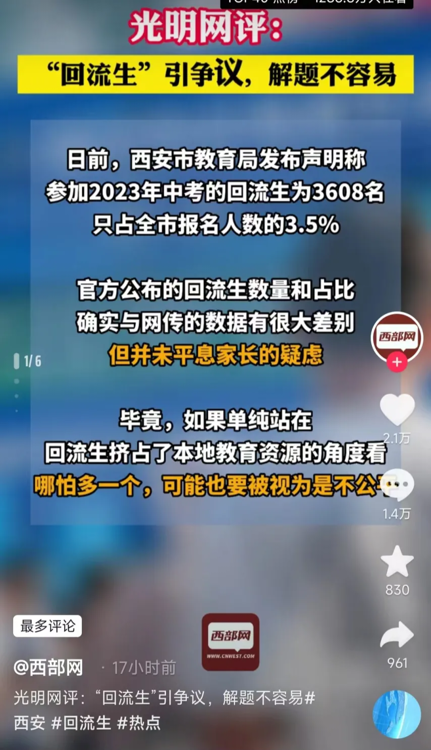 这两天,主流媒体正在纷纷报道西安市“回流生”事件。