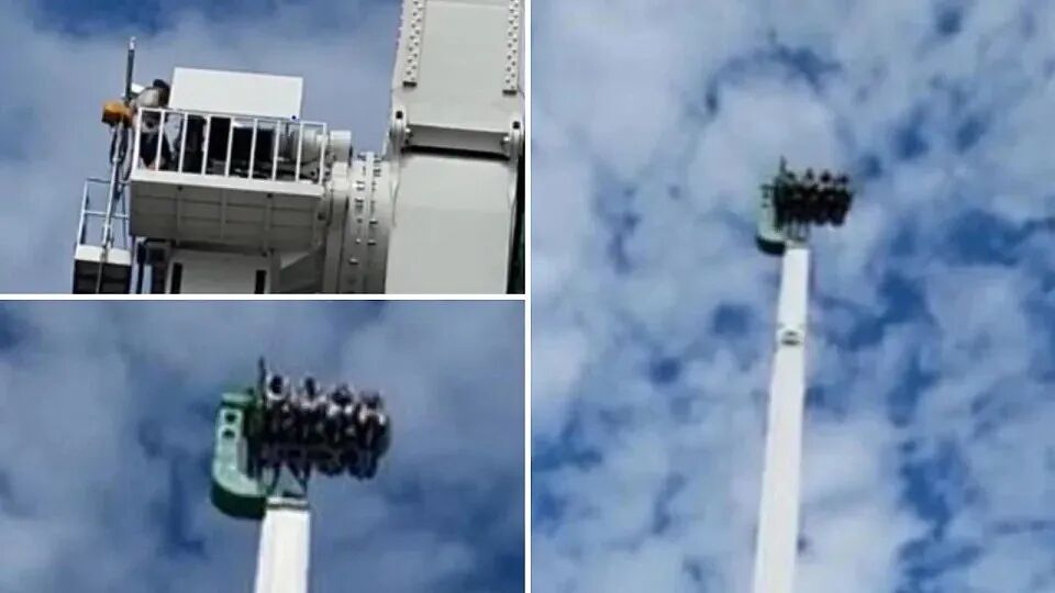 55m高的摆锤游乐设施中途停止的情况(图片来源:雅虎新闻)