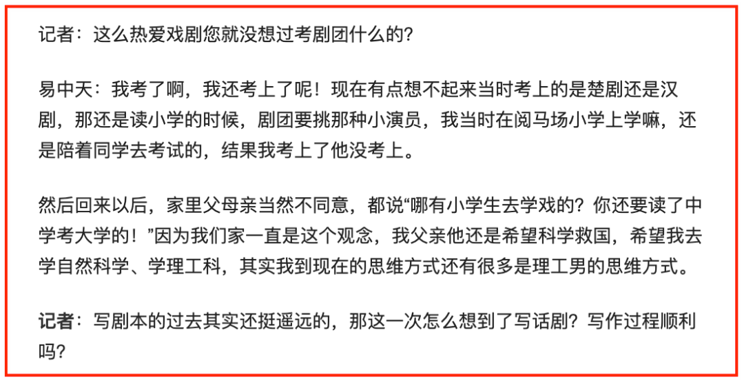 易中天从小就爱看戏,而且他不仅爱看,还乐意写。在他10岁那年,他就写了人生中第一个剧本。