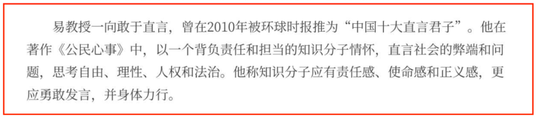 后来,他也被环球时报评为“中国十大直言君子”。