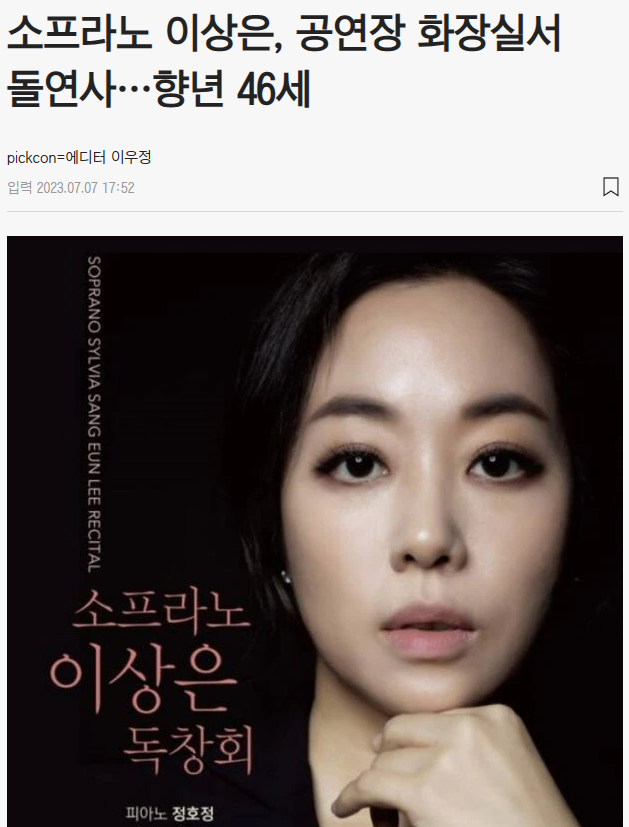 据悉,李尚恩生前受邀到韩国金泉市出席演奏会,原定在晚上7时30分开演,台下观众都在等待李尚恩登台,却迟迟没有看到人,所以工作人员才会去厕所寻人。