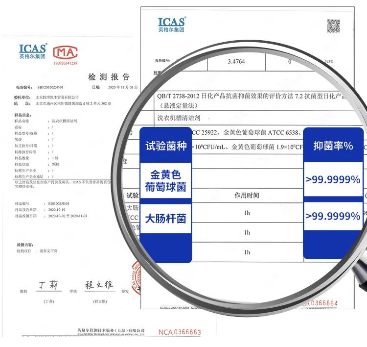 关键是它的经过质检证明,效果很好,能更好的清除洗衣机里的细菌,守护全家健康~