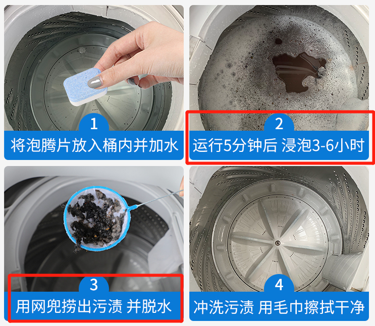 前几代的洗衣机清洁剂需要5~8个小时的浸泡或是需要高温热水才能生效,还要用手捞脏东西。
