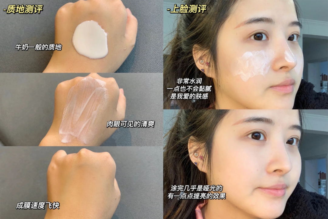 比起那种死白死白的物理防晒,蓝胖子的提亮作用非常自然,像抹了素颜霜一样。而且不会有厚重的粗糙感,很清透细腻,皮肤看上去更有光泽感,有种水光肌的感觉。补水效果也很惊艳,涂完瞬间补水20%,就像是刚做完面膜,肌肤水润光亮,满满的水光感。平时化妆干燥卡粉的话,妆前用它相当于上了一层滋润的妆前乳,卡粉能缓解很多,妆容还能更持久服帖。蓝胖子的防水性也顺带给大家测试了,把防晒霜涂在手上,过三分钟后淋水。可以看到手上的水珠状是呈一颗一颗停留的,这就是传说中的“遇水成膜”,说明防水。夏天防晒才能白的发光,户外出行真的非常需要这样一款无惧紫外线的防晒产品。所以怕麻烦的伙伴们平时出门就抹这瓶蓝胖子,不用再抹别的东西,也能让别人觉得你天生好皮肤。-点击下图立即购买-