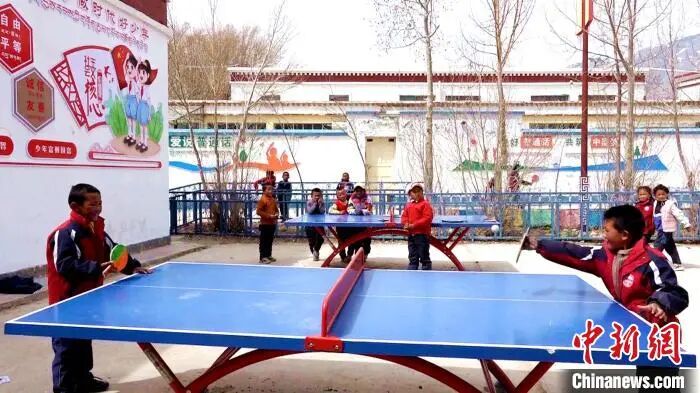 图为多油完小学生在课余时间打乒乓球。贡桑拉姆 摄