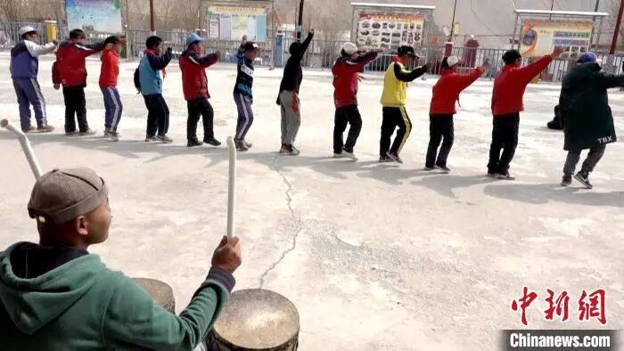 图为多油完小学生在课余时间练习传统非遗舞蹈“嘎尔”舞。贡桑拉姆 摄