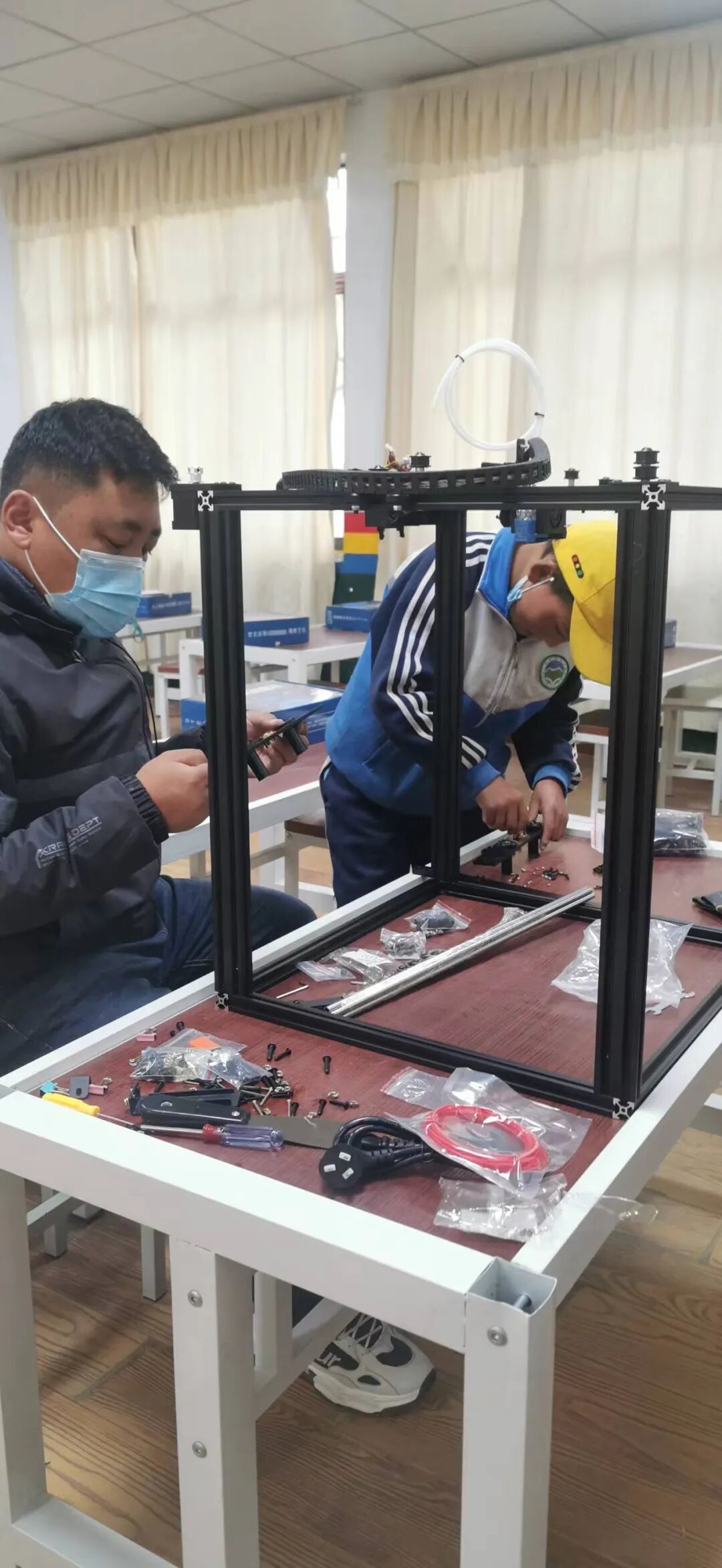 学生们需要坐在地上上课