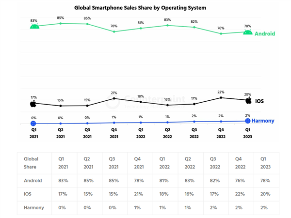 根据Counterpoint的最新数据报告,华为鸿蒙系统在中国的市场份额已经成为继安卓、iOS之后的第三大手机操作系统。