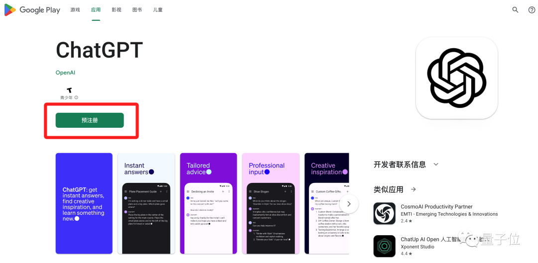 OpenAI给出的预注册链接,指向的是Google Play的应用页面。