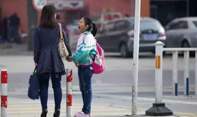 起码的睡眠无法保证,一位学生上学路上疲惫地打起了呵欠。