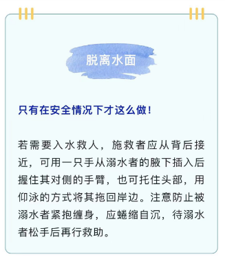 只有在安全的情况下才下水救人,并且注意救援的方式(从背后靠近,被抱住如何脱身等等)