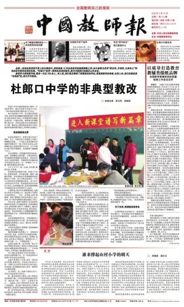 20年前的山东聊城杜郎口中学,首次在课改后以100%的中考升学率“震惊”全省。随后的2005年,山东省农村中学教育教学改革现场会在杜郎口中学召开,其课堂教学改革的经验和声名从此走出山东,走向全国。至今,学校已接待来自全国各地超过160万人次的参观学习者。当年那所濒临撤并的乡村中学为求生存的课改行动,在此后的20年里,输出的经验和价值激活了无数学校和师生,产生了包括“九大教学范式”等一系列新模式、新成果;同时也因其规模不大、师资不强、课程资源有限的乡村学校形象,传出了一些质疑声……《中国教师报》因持续报道杜郎口中学及许多课改学校,而被诸多教育人称为“课改报”。当本报迎来20周年报庆,追溯那些曾经报道过的学校典型经验时,显然绕不过杜郎口中学。2006年3月,《中国教师报》记者深入杜郎口中学,对一所曾经连续10年在县里考核倒数的乡镇中学进行的“颠覆性”课堂教学改革进行采访,并在3月22日头版头条发表长篇报道《杜郎口中学的非典型教改》,以近3个版的篇幅系统介绍杜郎口中学的课改实践。同年10月,《中国教师报》再次推出《再访杜郎口》《杜郎口中学课堂变革探秘》《专家眼里的杜郎口》等8版联动的深度报道。此时,杜郎口中学已经从1998年开启的课堂教学改革中扭转局面,初中基本呈现全员升学的良好态势,山东省、聊城市已“发现”杜郎口中学的不同凡响之处,相关专业会议陆续在该校举办。此后多年,《中国教师报》跟踪报道杜郎口中学,还开辟专版在读者中展开“杜郎口中学大讨论”。包括新华社、中央电视台、《光明日报》在内的各级各类媒体也不吝笔墨,用数千篇文章关注和报道这所乡村中学。杜郎口中学通过小组合作学习、导学案和课堂展示等方式,实现了课堂教学从教师“教”为中心向学生“学”为中心的转变,这一课堂教学形式最终被总结提炼为“三三六”自主学习模式。长期关注杜郎口中学的四川省成都市武侯实验中学原校长李镇西曾撰文评价:正是《中国教师报》的重点宣传、追踪报道,让地处偏远农村的杜郎口中学天下闻名。他认为,相对于大都市的名校及其教师而言,杜郎口中学属于最贴近广大平民百姓的学校,这里的教师最能代表全国广大的一线教师。因此,“为杜郎口中学正名,就是为广大一线教师扬威”。作为一所普通的乡镇中学,杜郎口中学的课改最大限度彰显了“以人为本,关注生命”的育人理念,从而培养学生自信阳光的性格、自主自发的学习习惯,不仅重建了课堂教学文化,也形成了人格培育的学校新文化,改变了师生的生命状态。这场课堂教学改革“是一场课堂教学模式的革命性变革,是一个土生土长的、具有原创意义的教育改革的典型”。许多专家的共识,让这个乡村教育典型超越时间和地域,在近20年时间里,吸引了来自全世界10多个国家和地区的国际友人到访交流。日本教育专家佐藤学考察后,激动地说:杜郎口中学是中国大陆第一所堪称世界级的学校,她绝不仅是中国的,一定是世界的!福建师范大学教授余文森认为,杜郎口中学的贡献就在于创立和形成了一套以学生为中心的课堂教学模式和程序,找到了现有教育体制特别是在统一课程标准、统一教科书、统一考试下课堂实施素质教育的突破口,在班级授课制特定的时空里,构建和形成了以学生为主体、以学习为主线、以展示为特征的教学模式。国务院发展研究中心曾在“我国基础教育改革与发展的若干重大问题研究”课题结题报告中说:杜郎口中学自主教育模式打破了现行的教育学关于课堂教学模式的规范性要求,冲破了重重阻力,走出了一条自己的路子。为生存尊严而“战”的一所乡村学校,从课堂孕育出超越地域、时间的新经验,也为更多教育人追求教育理想提供了一条鲜活路径。杜郎口中学的实践成果也获得省级教学成果奖一等奖、基础教育国家级教学成果奖二等奖,学校还曾获得全国教育系统先进集体等荣誉。2022年12月,山东省教育评价改革实验基地遴选结果公布,杜郎口中学成为入选的27家单位中唯一的乡村学校。学校探索核心素养引领下的学生综合评价,推行了学生成长银行、积分超市等创新举措,通过应用主链综合评价激励系统,以“五育融合”式综合评价标准,把过程性评价、表现性评价与增值性评价相融合,并与学校电子班牌结合,打造了多场景、精细化、科学化的学生教育评价体系。这场新时代基于评价的融合创新,与杜郎口中学引进信息化工具,进一步建构“互联网+自主课堂”,形成“精彩+实效”的新“三三六”教学模式同步进行,也在杜郎口教育集团中统一实践。正是“杜郎口”品牌在不断被看见、受重视的过程中,聊城市委、市政府领导在2019年底提出成立杜郎口教育集团、建设杜郎口高中的动议。2020年9月先期借杜郎口中学校园校舍高标准开办杜郎口高中,同时由杜郎口中学统一整合管理附近的3所小学。在一体化发展过程中,杜郎口高中借助信息化升级“三三六”自主学习模式,形成“互联网+自主课堂”范式,同时通过“二磨三研教师集体备课体系”做实教研,建设“五位一体学生自主管理体系”,从而快速提升高中教育教学成效。今年6月底,山东省高考成绩公布,杜郎口高中首届毕业生以超过80%的本科上线率证明了杜郎口品牌的价值。如今,那个乡土气息未变的学校,