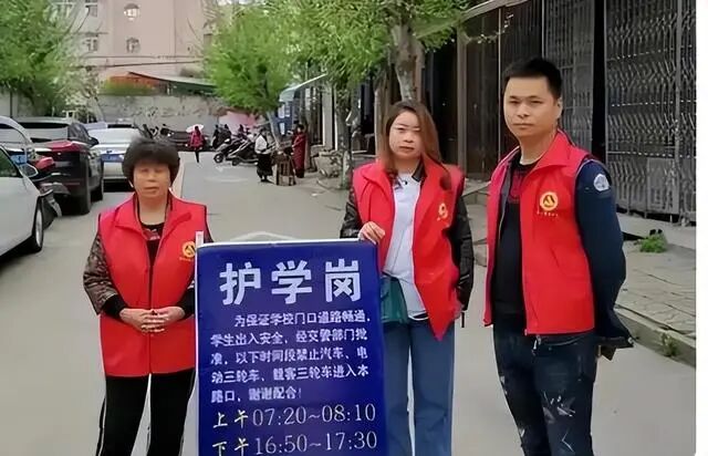 许多小学都设置了“护学岗”,就是让家长在学生上下学期间,轮流到校门口站岗,保护学生的安全。