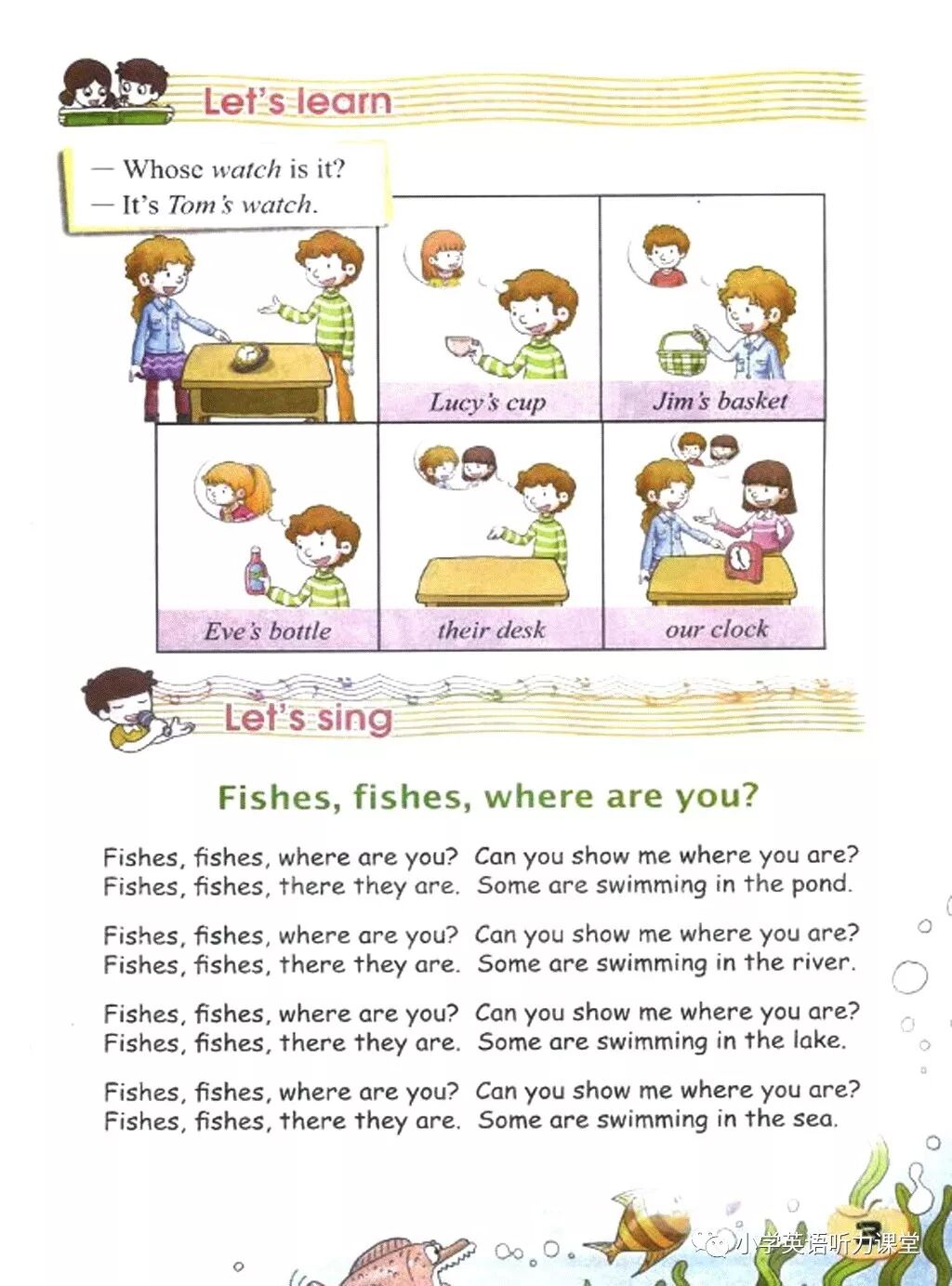 Fishes, fishes, where are you?Can you show me where you are?Fishes, fishes, there they are.Some are swimming in the pond.Fishes, fishes, where are you?Can you show me where you are?Fishes, fishes, there they are.Some are swimming in the river.Fishes, fishes,where are you?Can you show me where you are?Fishes,fishes,there they are.Some are swimming in the lake.Fishes, fishes, where are you?Can you show me where you are?Fishes, fishes, there they are.Some are swimming in the sea.