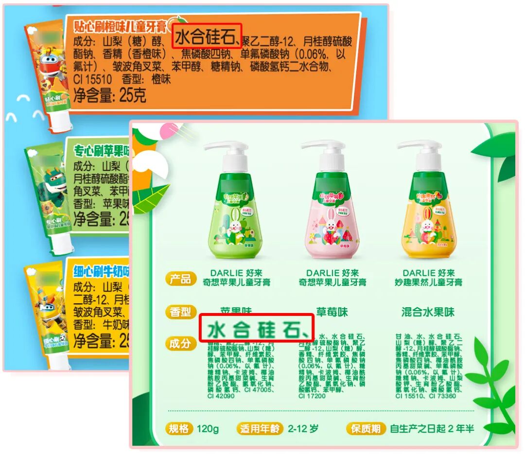 目前很多儿童牙膏也都只用这种摩擦剂👇: