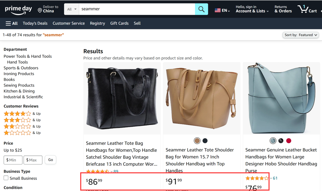 由于VINEY出色的做工能力,其品牌也开发了一些海外线子品牌,比如今天要给大家种草的SEAMMER品牌,重点为亚马逊北美市场,其包包售价基本在79美刀以上(折合人民币500+)。