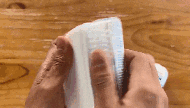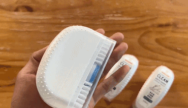 刷毛中间有个圆形海绵,细密软糯,按下红色小点就可以挤压出清洁剂了~