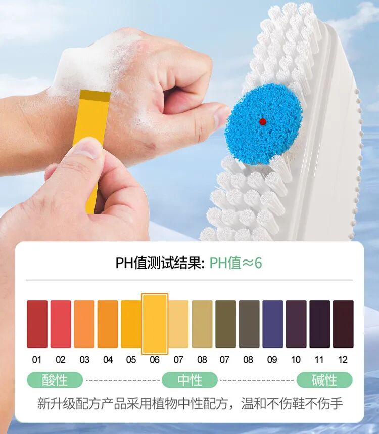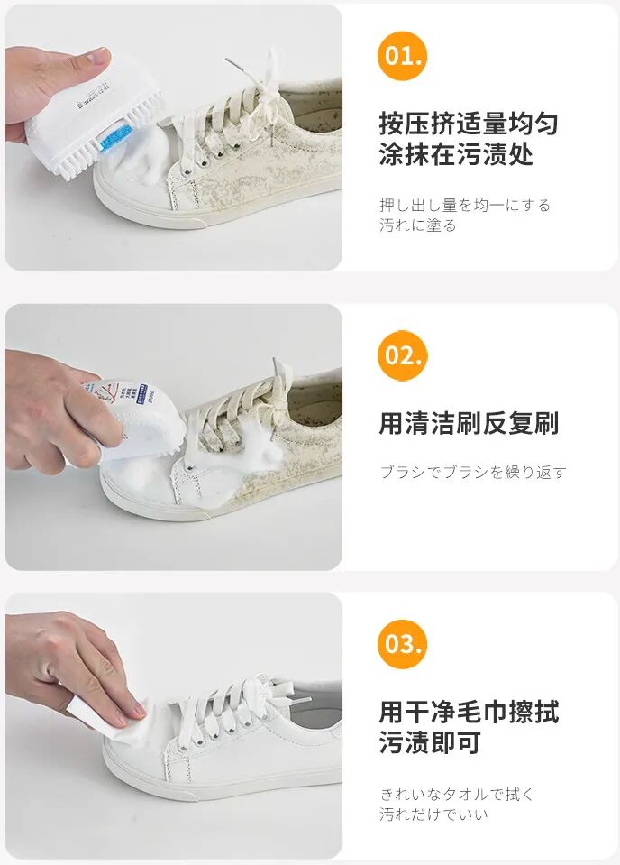 小白鞋清洁剂是中性温和配方,不伤鞋子不伤手,轻松去污垢~