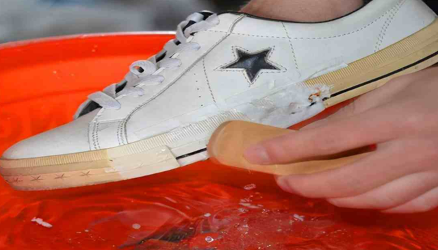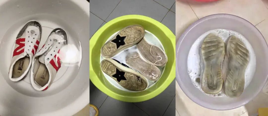 想一想,我们刷鞋时,是不是习惯先丢水里,用洗衣液或者是肥皂浸泡个半天或者一天!