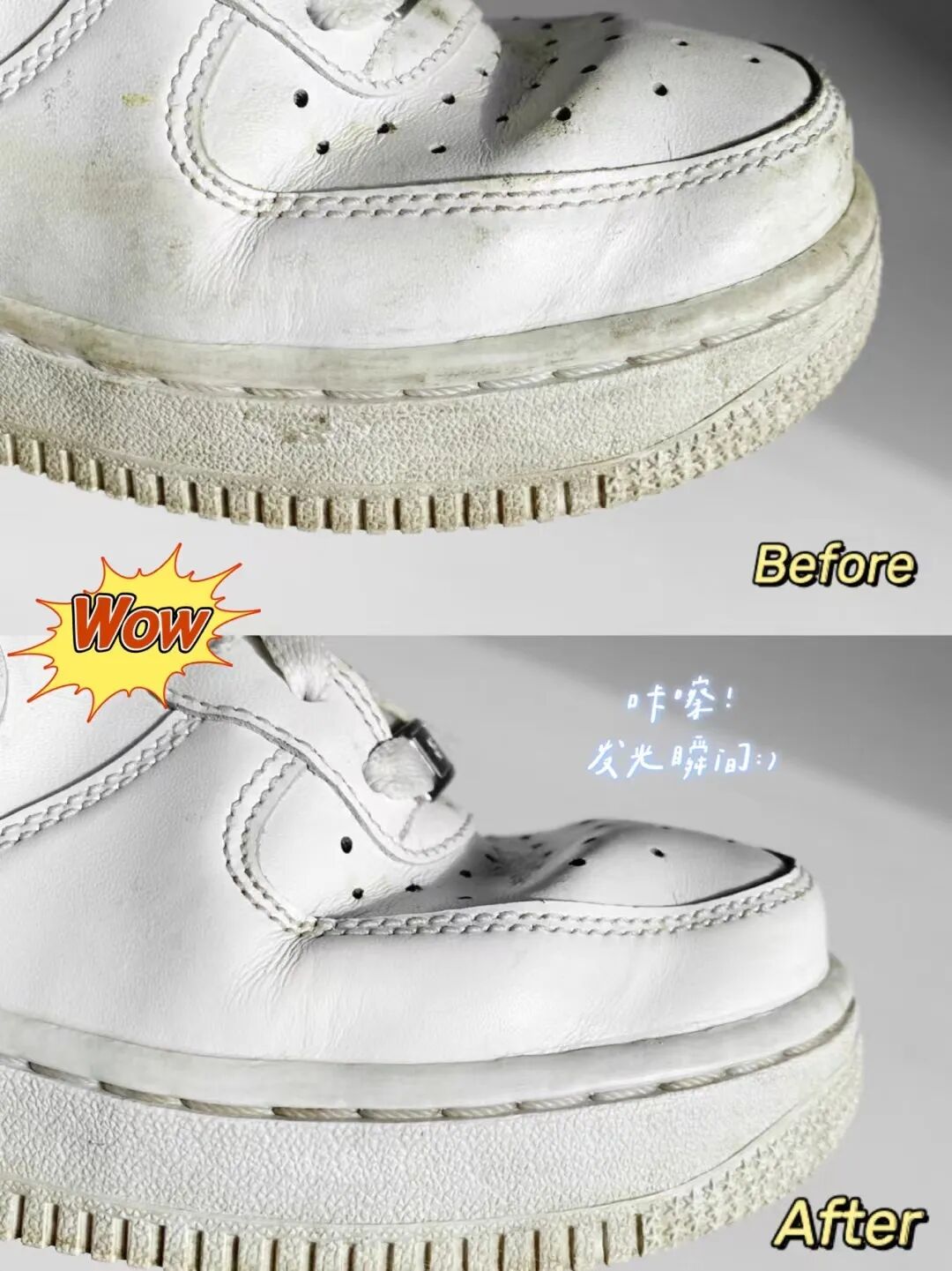 白倍极小白鞋清洁剂清洁后还可以有效提亮,养护鞋面,预防鞋面老化~