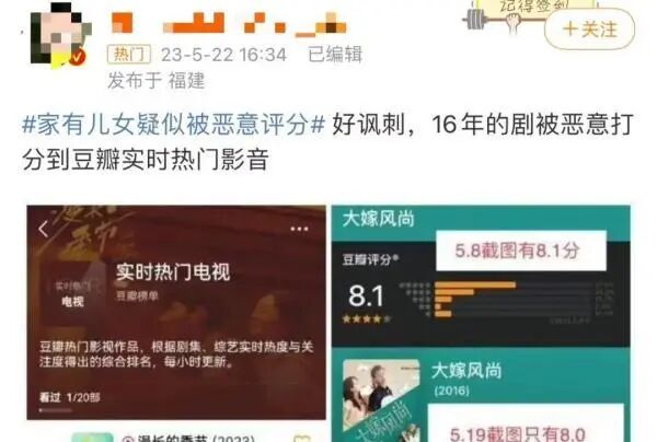 这不,也不知道是谁家出手了,直接跑去给杨紫参与出演的《家有儿女》刷一星。
