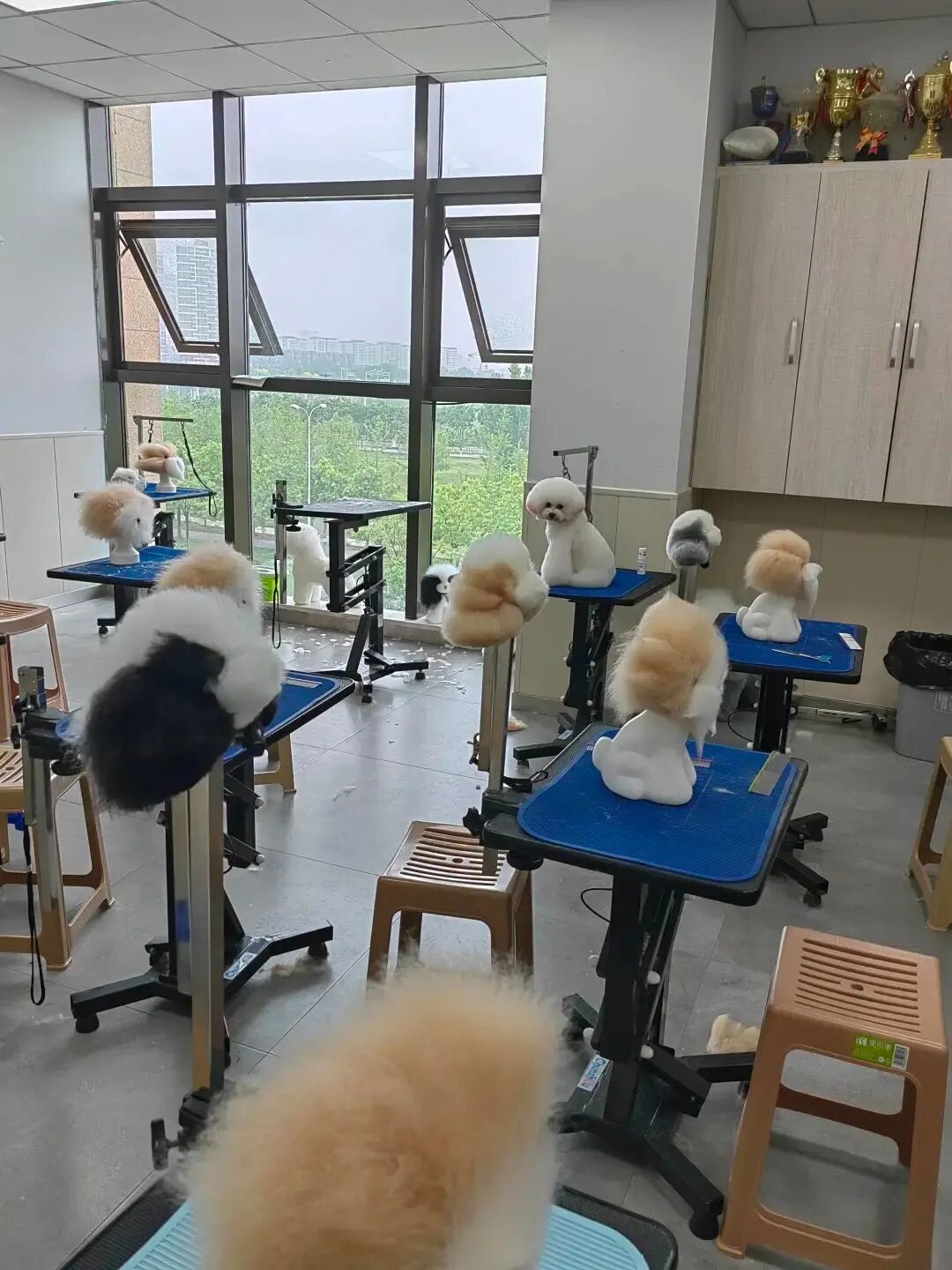 YY在宠物学校学习宠物美容。讲述者供图今年五一还没结束,我就开始在专门的学校学习宠物美容了。每天上午九点上课,需要给狗狗解毛结、掏耳朵、擦眼睛和剪指甲,洗完澡之后拿钢丝刷和吹风机把它们的毛吹干、拉直,最后才修剪、美容。这些要在下午五点前做完,老师再给你点评。有时遇到的狗狗体型大或者毛量多,我一直在解毛,胳膊会很酸;到了吹毛,吹风机可能会在我耳边轰鸣一个小时,过后我头会很晕。不过没有难或者累到我想放弃。我从小就喜欢动物,之前一直有开宠物店的想法。学校离家三十多公里,我住宿舍,每周二休息。每次学习我都会记录,有时发给我老公,让他给孩子们看。宠物美容师最低是C级,往上一级是B级,之后还有好几级。我准备多学一个月,把B级考完。C级在西安的底薪据说是两千到三千五,加上提成,再卖点货,再能多个大概一千块钱,比起之前的工作薪资,我有点接受不了。B级可能有四千五到六千底薪,再加上提成,六千到八千样子,虽然跟以前有差距,但我觉得还是可以挣个房贷的同时,在别人店里学习下宠物店经营。这样实习两三个月后,我最终的目标开一家自己的宠物店。我们家在西安有几套房子,现在为了开店,考虑卖掉一套。我之前休息的一年花销都是在吃老本,现在没剩多少存款了。每月固定支出可能两万到两万五,毕竟孩子在成长嘛,每个季度都要买衣服、玩具,以及学习上的东西,还要上兴趣班。对我现在的决定,我老公比较理解。在工作上我们一直互相支持。我们现在仍然希望生活能缓缓地上升,而不是继续下降。那么多年努力过来了,突然发生这样一个变化,其实内心还是不愿意看到的。危机感,或者是内心不太想认输的劲,还在推着我们往前走。![]()