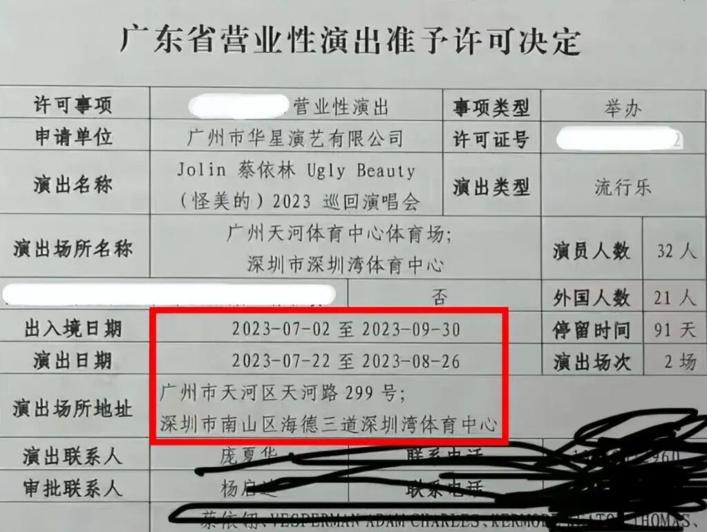 于是,蔡依林在广州、深圳两场演唱会的审批顺利通过了。