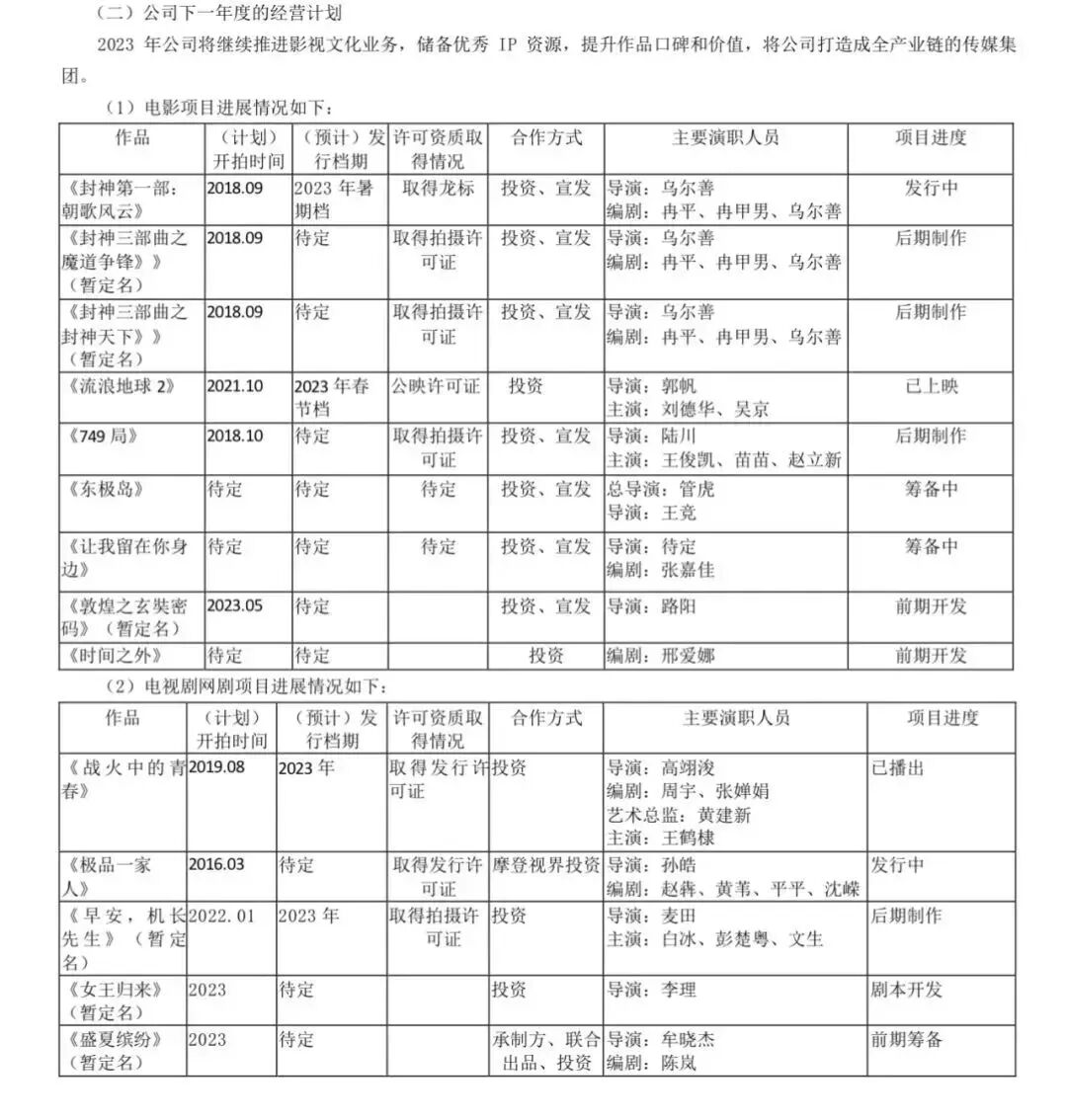 现在北京文化手里真的没有几张能打的牌了。公司的核心电影团队早在2020年就已经集体出走,由张苗领衔开创了新厂牌北京精彩,同时带走的还有多部曾经出现在北京文化年报中的储备项目。