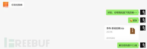 所以现在的流程就是:发送木马简历给HR -> HR从微信接受木马简历 -> HR解压后得到加密的简历(其实是捆绑器) -> 加密的简历解码后 ->触发加载器 -> 上线到我控制端 -> HR得到简历文件