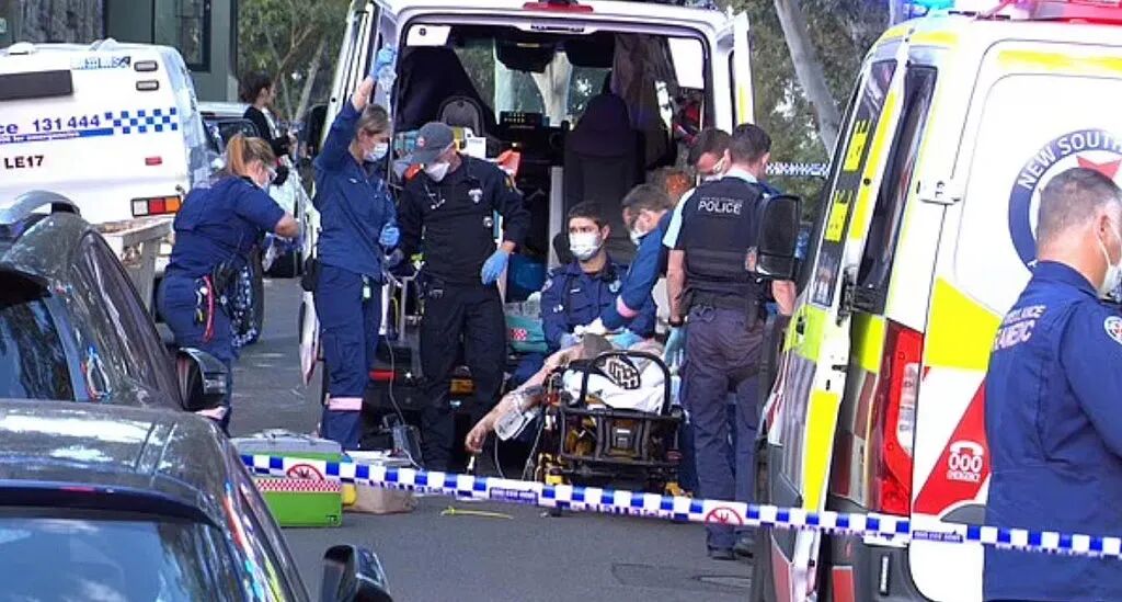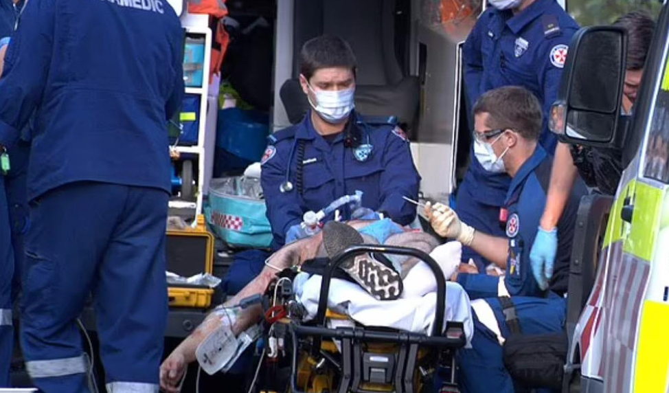 澳媒报道称,Nazlioglu裹着厚厚绷带、浑身是血,被医护人员用担架抬出大楼。