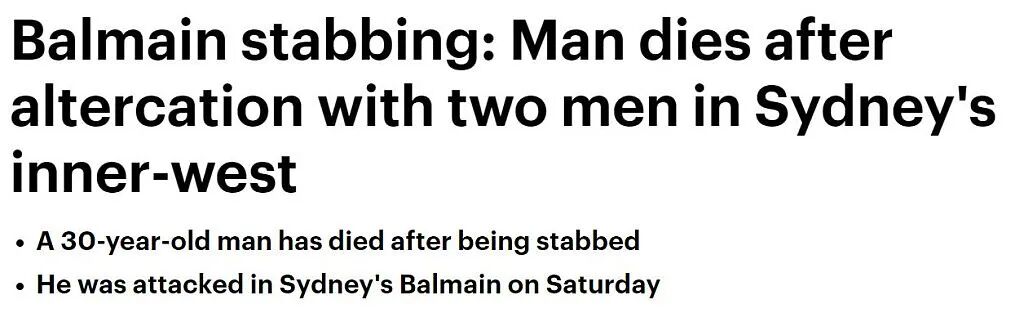 另一位居民Chani表示,当时自己睡得迷迷糊糊的,突然被一声枪响惊醒,然后就听到了一连串的枪声,他吓的不轻,可是更担心孩子们的安危,于是赶紧跑过去看孩子们是否在家。他说,“听到枪声之后我吓了一跳,下一秒就想起我家孩子喜欢半夜去烤肉店,于是赶紧跑到他房间查看,谢天谢地,孩子在家很安全。澳洲九号台新闻报道,悉尼街头一名男子当街被人捅成重伤,送医抢救后宣告不治。与早前多起枪击案类似的是,案发不久后都有一辆汽车在附近区域被纵火烧毁。周六下午3点40分左右,悉尼Balmain区Donnelly St发生一起持刀伤人案。警员接到报案电话赶到现场后发现,1名30多岁男子面部受伤,身上还有刀伤。警员被告知,该男子在街头与另外2名男子发生了争执,随后被捅伤,伤人者则驾车逃离了现场。![]()