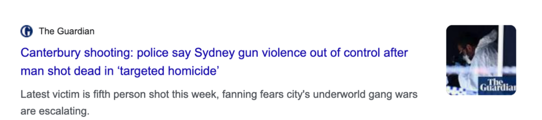 虽然澳洲出现“随机杀人”的犯罪现象较少,枪击多发生于各帮派斗争间,