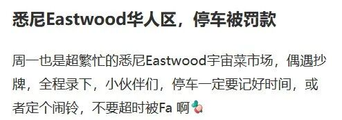 而在悉尼最著名的华人区Eastwood,许多华人也曾反映,自己因为停车损失“惨重”!