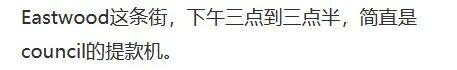 一位华人网友表示:“Eastwood这条街,下午三点到三点半,简直是council的提款机。”