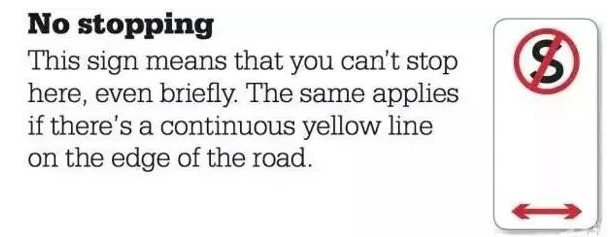 比如说,如果看到No Stopping的标识,那么就是停一分钟也不行。