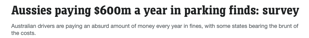 此前,澳媒曝光的一组数据显示,澳洲人每年因停车被罚的款,居然高达6亿澳元!